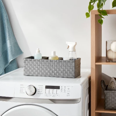 Keep your everyday essentials sorted and separated in style with the Woven Plastic 3-Compartment Bin from Brightroom™. This gray bin features a woven design with three compartments to give you ample space for a variety of items. Made of plastic, this woven bin can be placed in your kitchen, bath space or any other area for effortless organization.